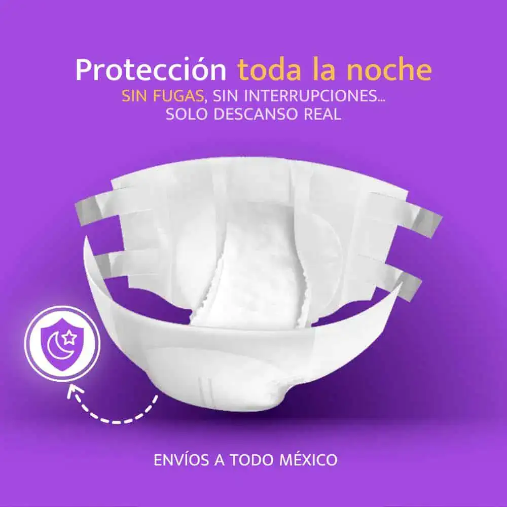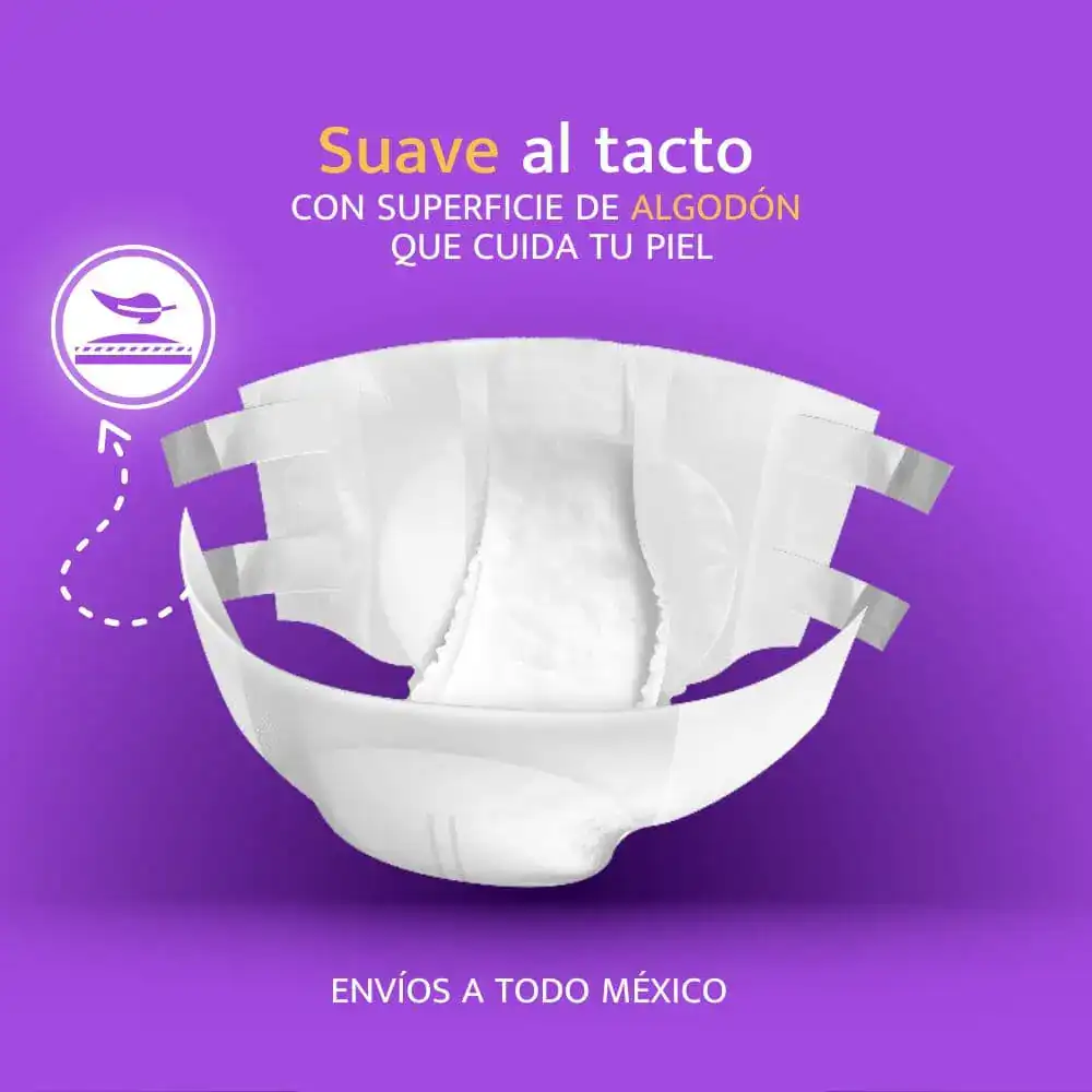 ✅ Máxima absorción con su núcleo superabsorbente que retiene hasta 1,500 ml de líquido, manteniendo la piel seca por más tiempo.