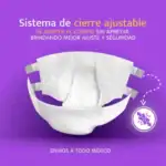 Incluye un indicador de humedad, que facilita el momento del cambio, y una capa de distribución que dispersa el líquido de forma uniforme, evitando acumulaciones. Además, su material respirable permite la circulación del aire y reduce el riesgo de irritaciones. El sistema de cierre reajustable garantiza un ajuste perfecto, firme y reutilizable.